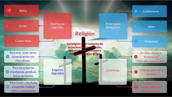 La religión es el conjunto de experiencias, significados, convicciones, creencias y expresiones de un grupo.