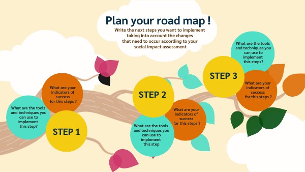 Write the next steps you want to implement taking into account the changes that need to occur according to your social impact assessment