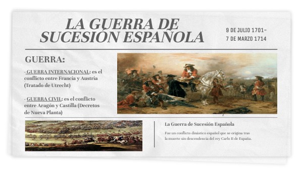 - GUERRA INTERNACIONAL: es el conflicto entre Francia y Austria (Tratado de Utrecht)- GUERRA CIVIL: es el conflicto entre Aragón y Castilla (Decretos de Nueva Planta)