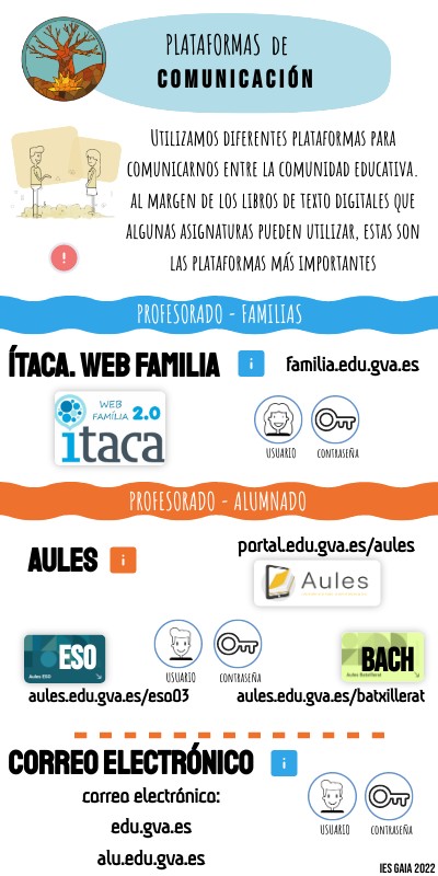 Utilizamos diferentes plataformas para comunicarnos entre la comunidad educativa. al margen de los libros de texto digitales que algunas asignaturas pueden utilizar, estas son las plataformas más importantes