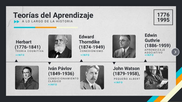 En esta línea del tiempo se dan a conocer cada uno de los autores y teorías más relevantes sobre el Aprendizaje a lo largo de la historia.