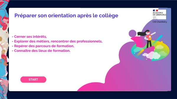 - Cerner ses intérêts, - Explorer des métiers, rencontrer des professionnels, - Repérer des parcours de formation, - Connaître des lieux de formation.