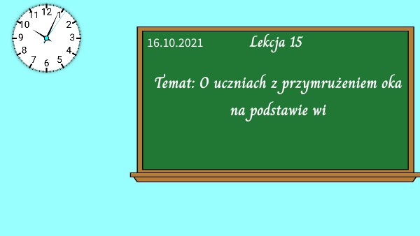 1. Przeczytasz utwór Jana Twardowskiego ,,W klasie"2. Wskażesz bohaterów tekstu i przypiszesz im cechy.3. Poznasz związki frazeologiczne: ,,patrzeć na coś przez palce", "przymknąć na coś oko", "z przymrużeniem oka". 4. Podasz dalszy ciąg ukazanych zdarzeń. 5. Przypomnisz definicję "zwrotka" i "wers".