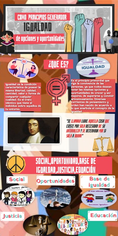 Es el principio primordial que rige la convivencia de las personas, ya que todos desean tener las mismas opciones y oportunidades de crecer y ser mejores, de superarse y convivir armoniosamente. Diversas corrientes de pensamiento y orden han nacido de acuerdo a lo que enarbola el concepto de la igualdad.