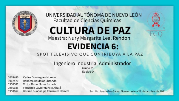 Les presentamos un breve spot acerca de la cultura de paz.
