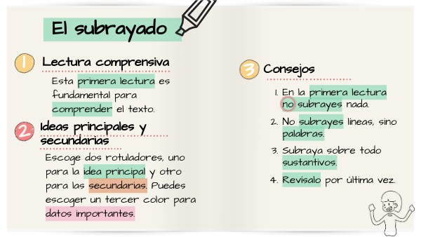Escoge dos rotuladores, uno para la idea principal y otro para las secundarias. Puedes escoger un tercer color para datos importantes.