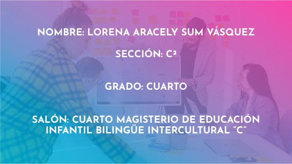 Nombre: Lorena Aracely Sum Vásquez Sección: C² Grado: cuarto Salón: Cuarto Magisterio de Educación Infantil Bilingüe Intercultural “C”