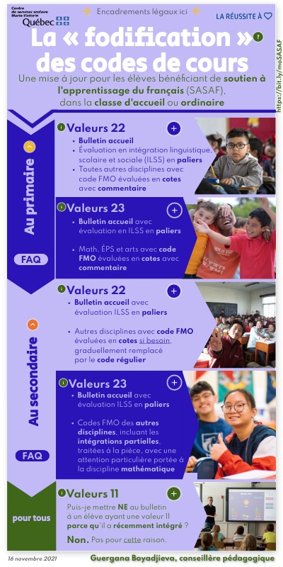 Une mise à jour pour les élèves bénéficiant de soutien à l'apprentissage du français (SASAF), dans la classe d'accueil ou ordinaire