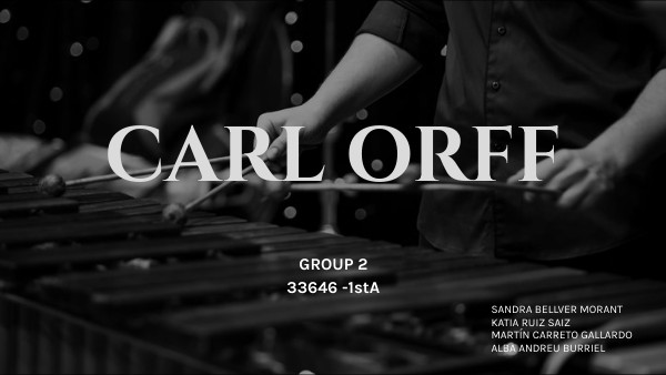 The main objective of our work is to explain and highlight the importance of one of the best-known methodologies in the world of music, created by Carl Orff Orff was a German composer especially known for: -Carmina Burana -Musical teaching system for children (Orff Schulwerk/Método Orff)