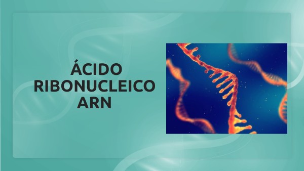 Formado químicamente con la secuencia de nucleótidos que forman una sola cadena. Copia de una banda de ADN, combinando la desoxirribosa por la ribosa y la base Timina por el Uracilo. FUNCIÓN DEL ARN: Es el encargado de la síntesis de proteínas