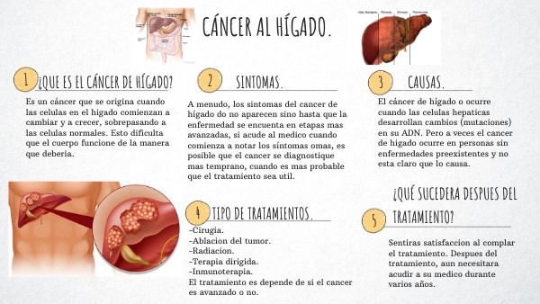 Es un cáncer que se origina cuando las celulas en el higado comienzan a cambiar y a crecer, sobrepasando a las celulas normales. Esto dificulta que el cuerpo funcione de la manera que deberia.
