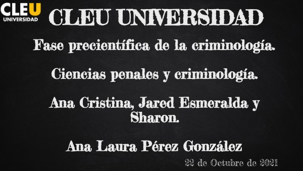 Fase precientífica de la criminología. Ciencias penales y criminología. Ana Cristina, Jared Esmeralda y Sharon. Ana Laura Pérez González
