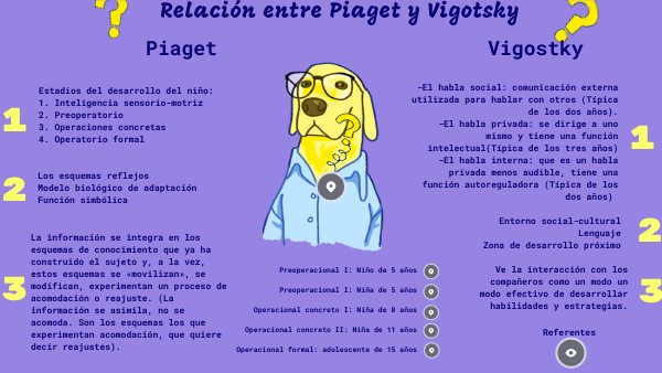 Estadios del desarrollo del niño:1. Inteligencia sensorio-motriz 2. Preoperatorio 3. Operaciones concretas 4. Operatorio formal