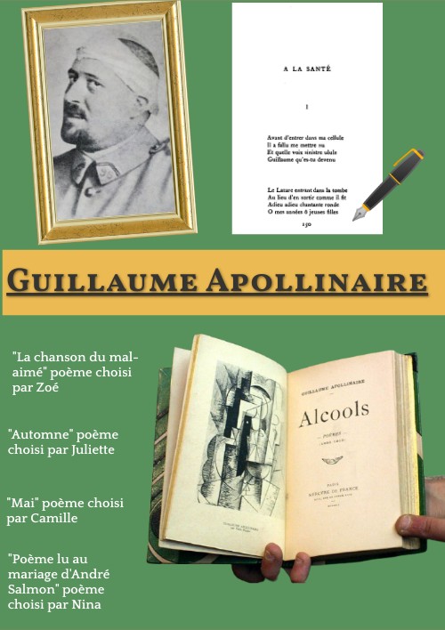 Apollinaire, de son vrai nom Guillaume Albert Vladimir Alexandre Apollinaire de Kostrowitzky, est un des précurseurs du mouvement surréaliste, c'est d'ailleurs de lui dont vient ce nom. Son oeuvre majeur est Alcools, publié en 1913.