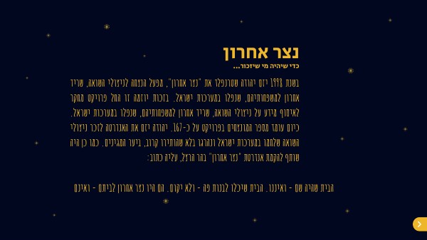 הקליקו על שתיים מהתמונות למטה של חלק מחללי נצר אחרון. קראו על הדמויות שבחרתם. הדליקו נר וירטואלי לזכרם. הציעו רעיונות נוספים לגבי כיצד ניתן להנציח אותם.