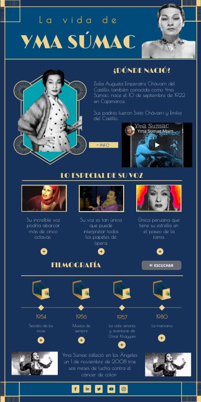 Yma Súmac falleció en los Ángeles un 1 de noviembre de 2008 tras seis meses de lucha contra el cáncer de colon
