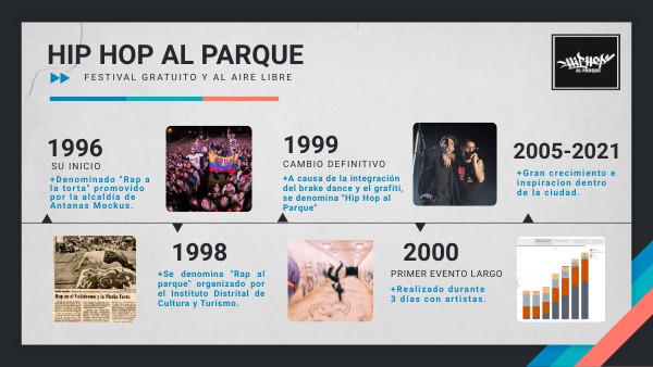 +A causa de la integración del brake dance y el grafiti, se denomina "Hip Hop al Parque"
