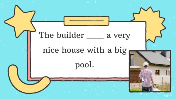 The builder ___ a very nice house with a big pool.
