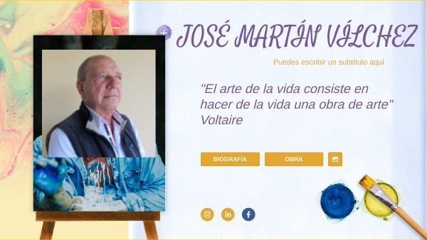 José Martín Vílchez, nació el 5 de noviembre de 1.952 en Lanjarón. A los diez años cogió por primera vez los pinceles de forma auto-didacta. Del año 1.975 al 1.978 período que conformó su formación en la Escuela de Artes Aplicadas y Oficios Artísticos de Guadix , dedicándose especialmente al Dibujo y a la Pintura. A partir de 1.978 hasta hoy, no ha dejado de pintar realizando bodegones, paisajes y retratos.