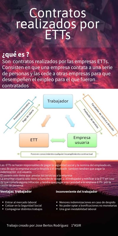 Son contratos realizados por las empresas ETTs. Consisten en que una empresa contata a una serie de personas y las cede a otras empresas para que desempeñen el empleo para el que fueron contratados