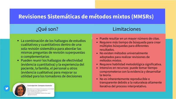 - No existen métodos universalmente adoptados para realizar revisiones de métodos mixtos.
