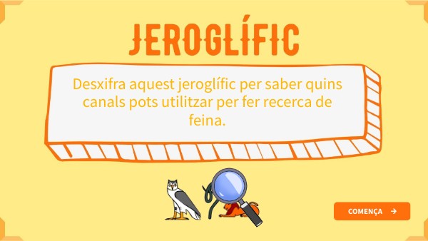 Desxifra aquest jeroglífic per saber quins canals pots utilitzar per fer recerca de feina.