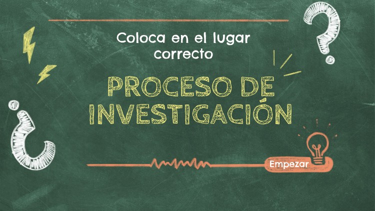 Completa arrastrando los espacios con cada paso para completar nuestro proceso de investigación.