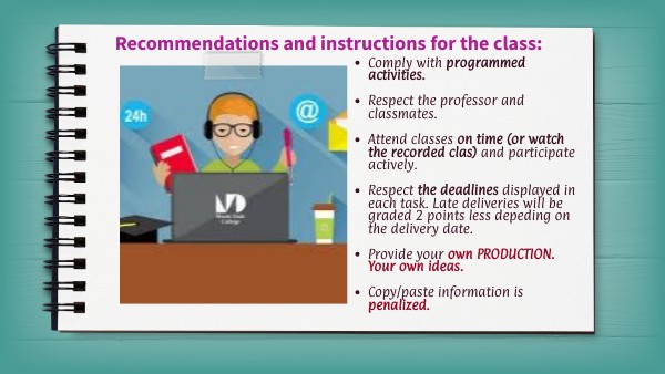 - Respect the professor and classmates.