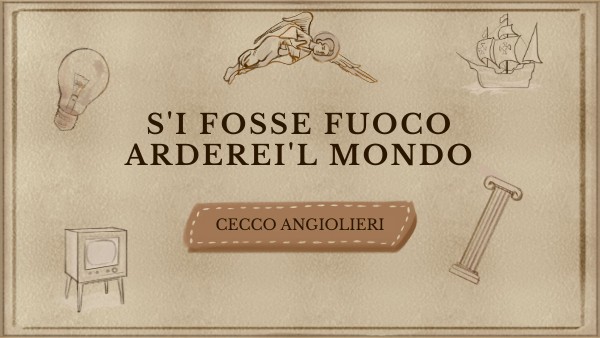 S’i’ fosse foco, arderei ‘l mondo; s’i’ fosse vento, lo tempesterei; s’i’fosse acqua, i’ l’annegherei; s’i’ fosse Dio, mandereil’ en profondo; s’i’ fosse papa, sare’ allor giocondo, ché tutti cristïani imbrigherei; s’i’ fosse ‘mperator, sa’ che farei? A tutti mozzarei lo capo a tondo. S’i’ fosse morte, andarei da mio padre; s’i’ fosse vita, fuggirei da lui: similemente farìa da mi’ madre. S’i’ fosse Cecco, com’i’ sono e fui, torrei le donne giovani e leggiadre: e vecchie e laide lasserei altrui.