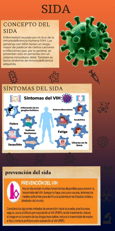 Enfermedad causada por el virus de la inmunodeficiencia humana (VIH). Las personas con SIDA tienen un riesgo mayor de padecer de ciertos cánceres e infecciones que, por lo general, se presentan solo en personas con un sistema inmunitario débil. También se llama síndrome de inmunodeficiencia adquirida.