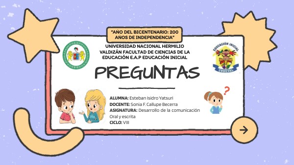 ALUMNA: Esteban Isidro YatsuriDOCENTE: Sonia F. Callupe Becerra ASIGNATURA: Desarrollo de la comunicación Oral y escrita CICLO: VIII