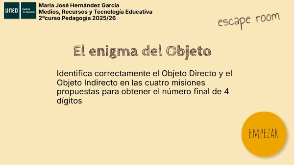 Identifica correctamente el Objeto Directo y el Objeto Indirecto en las cuatro misiones propuestas para obtener el número final de 4 dígitos
