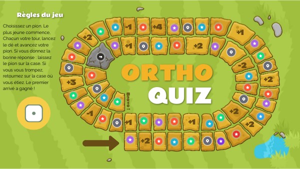 Choisissez un pion. Le plus jeune commence, Chacun votre tour, lancez le dé et avancez votre pion. Si vous donnez la bonne réponse : laissez le pion sur la case. Si vous vous trompez, retournez sur la case où vous étiez. Le premier arrivé a gagné !