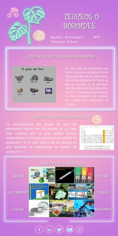 Es una serie de elementos que están situados en el grupo 13 de la tabla periódica de los elementos. Su nombre proviene de Tierra, ya que el aluminio es el elemento más abundante en ella, llegando a un 7.5%. Tienen tres electrones en su nivel energético más externo. Su configuración electrónica es ns2np1.