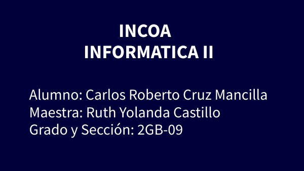 Alumno: Carlos Roberto Cruz MancillaMaestra: Ruth Yolanda Castillo Grado y Sección: 2GB-09