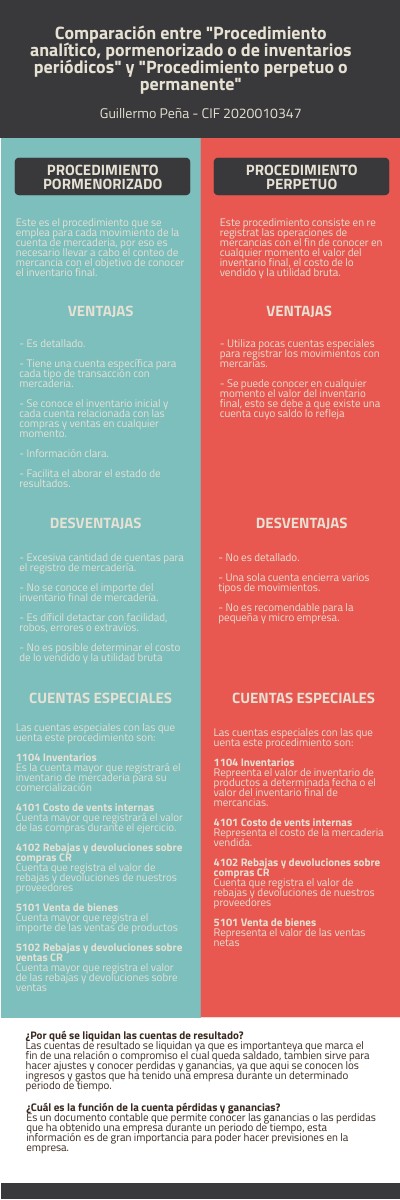 Comparación entre "Procedimiento analítico, pormenorizado o de inventarios periódicos" y "Procedimiento perpetuo o permanente"
