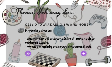 Kryteria sukcesu: - znam nazwy 5 aktywności realizowanych w wolnym czasie; - wyrażam opinię o danych aktywnościach