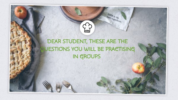DEAR STUDENT, THESE ARE THE QUESTIONS YOU WILL BE PRACTISING IN GROUPS