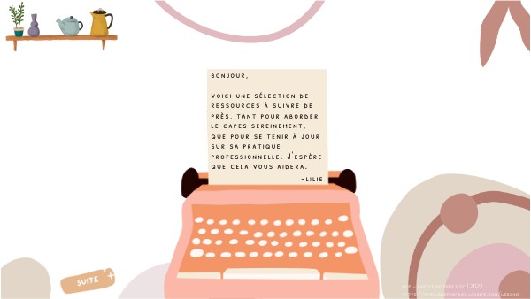 bonjour, voici une sélection de ressources à suivre de près, tant pour aborder le capes sereinement, que pour se tenir à jour sur sa pratique professionnelle. J'espère que cela vous aidera.