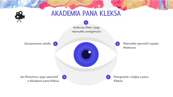 na kartce rozmazuje się KLEKSY i do OBRAZKÓW, które tak powstają, chłopcy dopisują historyjki wymyślone przez Kleksa