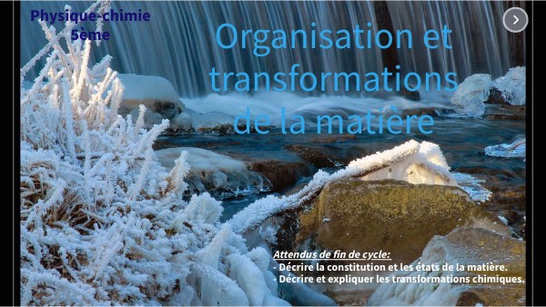 Attendus de fin de cycle: - Décrire la constitution et les états de la matière. - Décrire et expliquer les transformations chimiques.