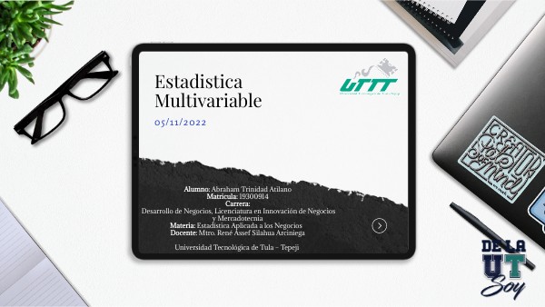 Alumno: Abraham Trinidad Atilano Matricula: 19300914 Carrera: Desarrollo de Negocios, Licenciatura en Innovación de Negocios y Mercadotecnia Materia: Estadística Aplicada a los Negocios Docente: Mtro. René Assef Silahua Arciniega Universidad Tecnológica de Tula – Tepeji