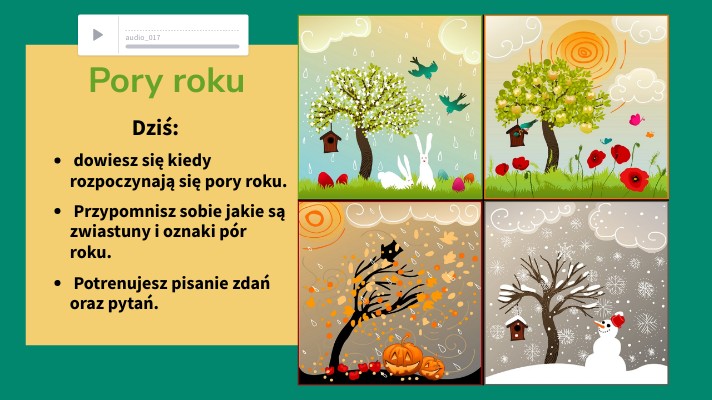 - dowiesz się kiedy rozpoczynają się pory roku.