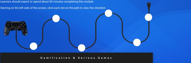 Learners should expect to spend about 60 minutes completing this module. Starting on the left side of the screen, click each dot on the path to view the checklist.