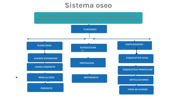 SUsprincipales funciones sostener el cuerpo dar proteccion alos organos internos almacenar calcio, fosforo, producir celulas y y permitir la locomocion.