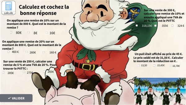 Sur une vente de 250 €, calculer une remise de 5 % et une TVA de 20 %. Pour trouver le PVTTC :