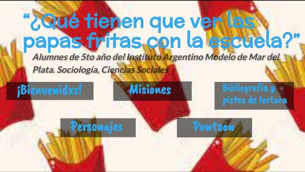¡Nos alegra mucho saludarles! En esta microexperiencia que nos confiere les proponemos seguir desafiandonos con el texto de Michael Apple "Comiendo papas fritas baratas" para comprenderlo en profundidad. En cada estación encontrarán información, videos y ¡misiones! como actividades para comprender mejor el tema que abordamos en el marco de esta materia. Esperamos que la disfruten y se lleven aprendizajes significativos para reflexionar, pensar y sentir... ¡vamos!