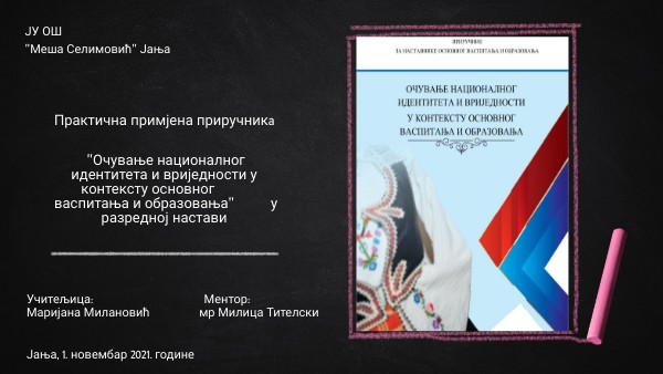 Практична примјена приручникa "Очување националног идентитета и вриједности у контексту основног васпитања и образовања" у разредној настави