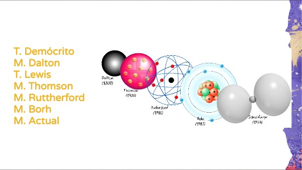 T. Demócrito M. Dalton T. Lewis M. Thomson M. Ruttherford M. Borh M. Actual