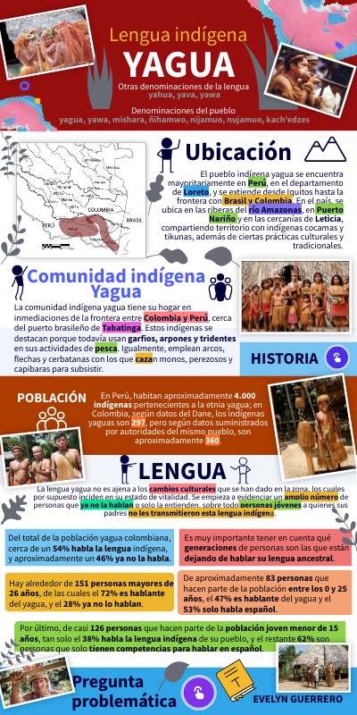 La comunidad indígena yagua tiene su hogar en inmediaciones de la frontera entre Colombia y Perú, cerca del puerto brasileño de Tabatinga. Estos indígenas se destacan porque todavía usan garfios, arpones y tridentes en sus actividades de pesca. Igualmente, emplean arcos, flechas y cerbatanas con los que cazan monos, perezosos y capibaras para subsistir.